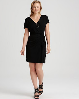 And finally, for those of us who are small-breasted, I have one word: RUFFLES!!! Or try a cowlneck...both look great on form-fitting dresses because they disguise the shape of your chest instead of drawing attention to what is lacking. I find that if I wear tight dresses, they make my chest look almost shockingly tiny. I found this dress at Sears for 24.99!!!
